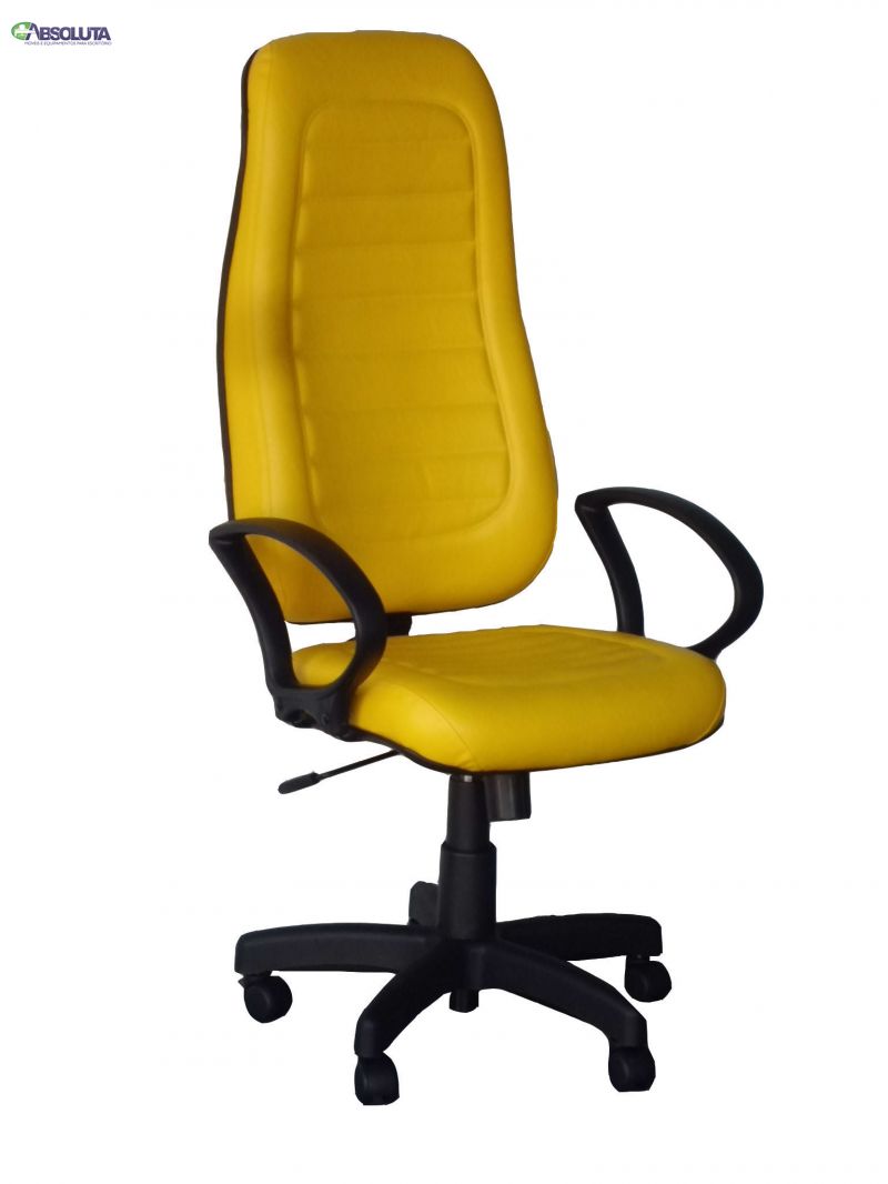 POLTRONA PRESIDENTE AMARELO FERRARI, COM APOIO DE BRAÇOS CLONE, ESPUMA INJETADA REVESTIDA EM COURVIM COM COSTURA DECORATIVA, BASE GIRATÓRIA CONM REGULAGEM DE ALTURA Á GÁS COM RELAX E TRAVA DE RELAX. MARCA VALENÇA