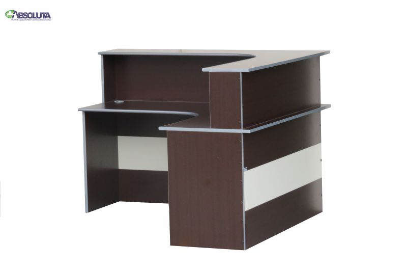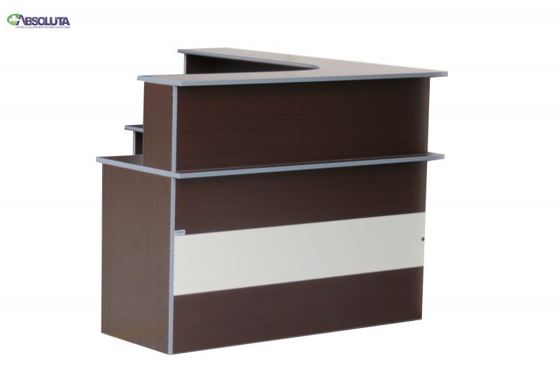 BALCÃO DE MADEIRA CURVO EM "L" MED. 1,60 X 1,40 COR TABACO / ARGILA MARCA VALENÇA