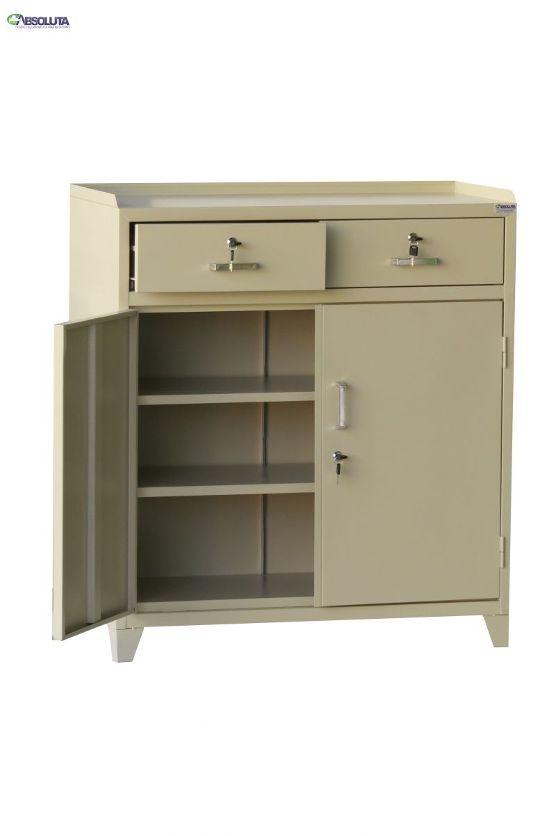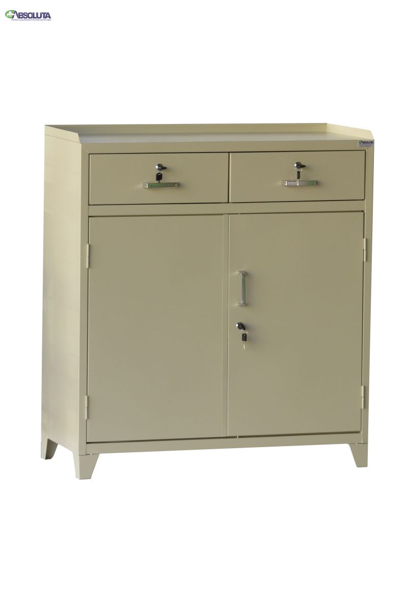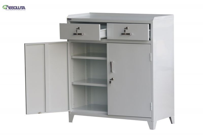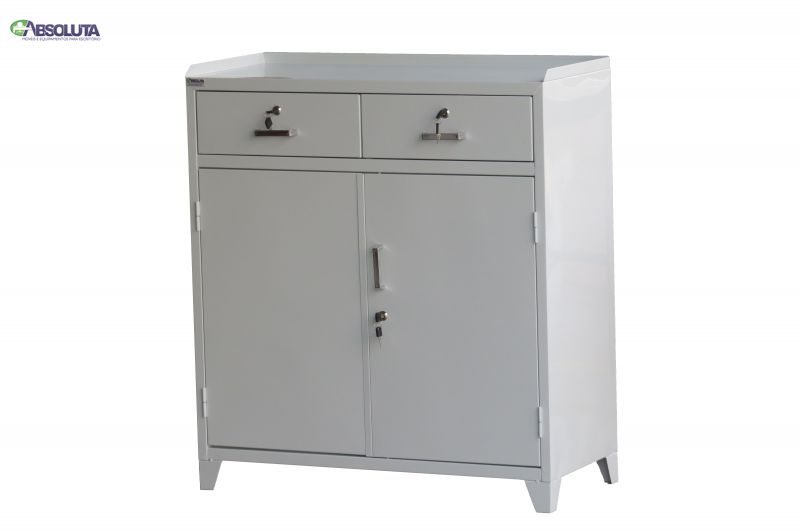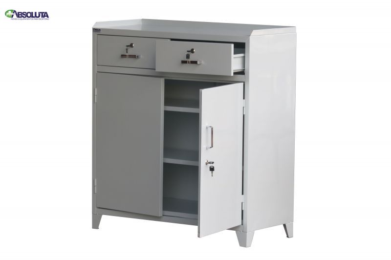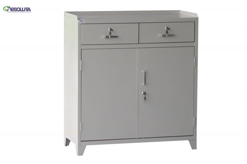 ARMARIO FERRAMENTEIRO DUPLO COR CINZA MED. 1,00 X 0,90 X 0,40 COM DUAS GAVETAS COM CHAVES, DUAS PORTAS E 3 VÃOS INTERNOS MARCA ART AÇO / ABSOLUTA MOVEIS PARA ESCRITORIO