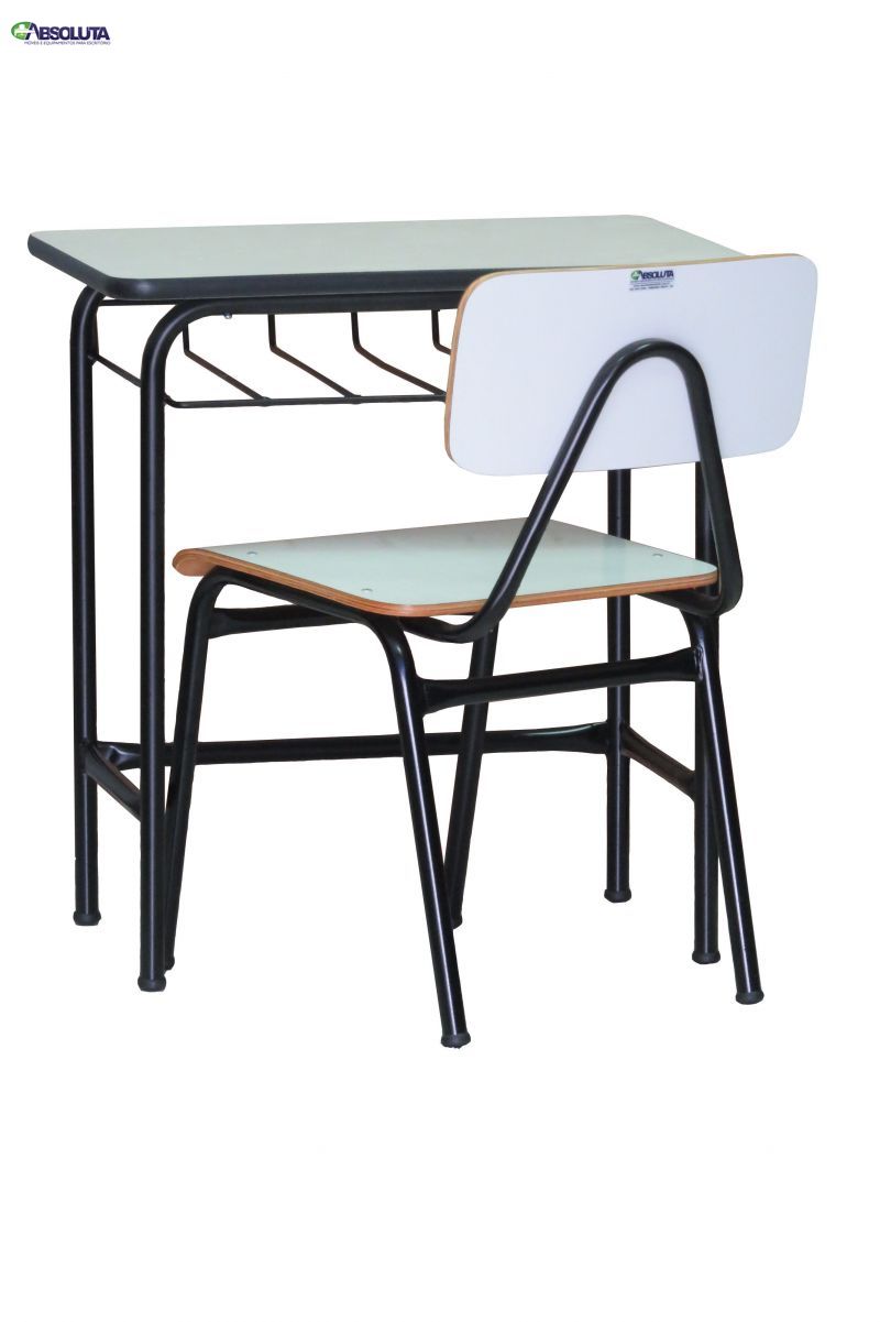 CARTEIRA E CADEIRA EM FORMICA COM ESTRUTURA EM TOBO DE AÇO MARCA VALENÇA MOVEIS