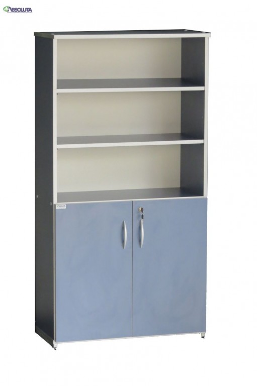 ARMARIO EXECUTIVO SEMI-FECHADO COM 2 PORTAS BAIXA E CHAVES COR AZUL / ALUMINIO MARCA VALENÇA MOVEIS