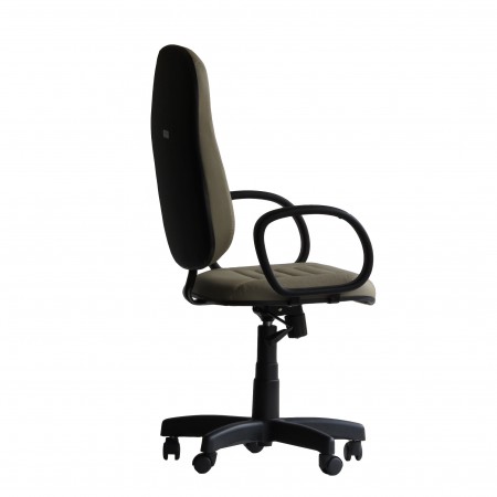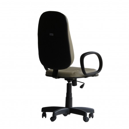 CADEIRA PERSIDENTE GIRATORIA COM ESTOFAMENTO REVESTIDO EM COURVIM COM COSTURAS DECORATIVAS, APOIO DE BRAÇOS GATILHOS, REGULAGEM DE ALTURA Á GÁS RELAX E TRAVA DE RELAX MARCA VALENÇA