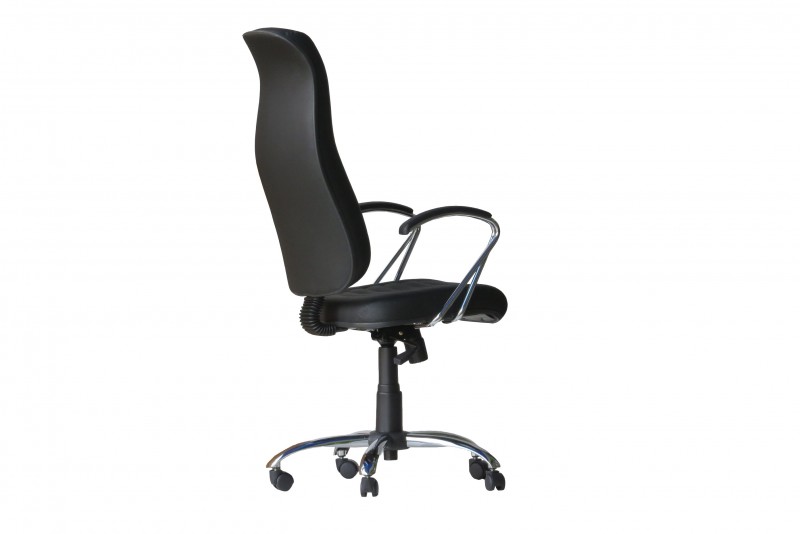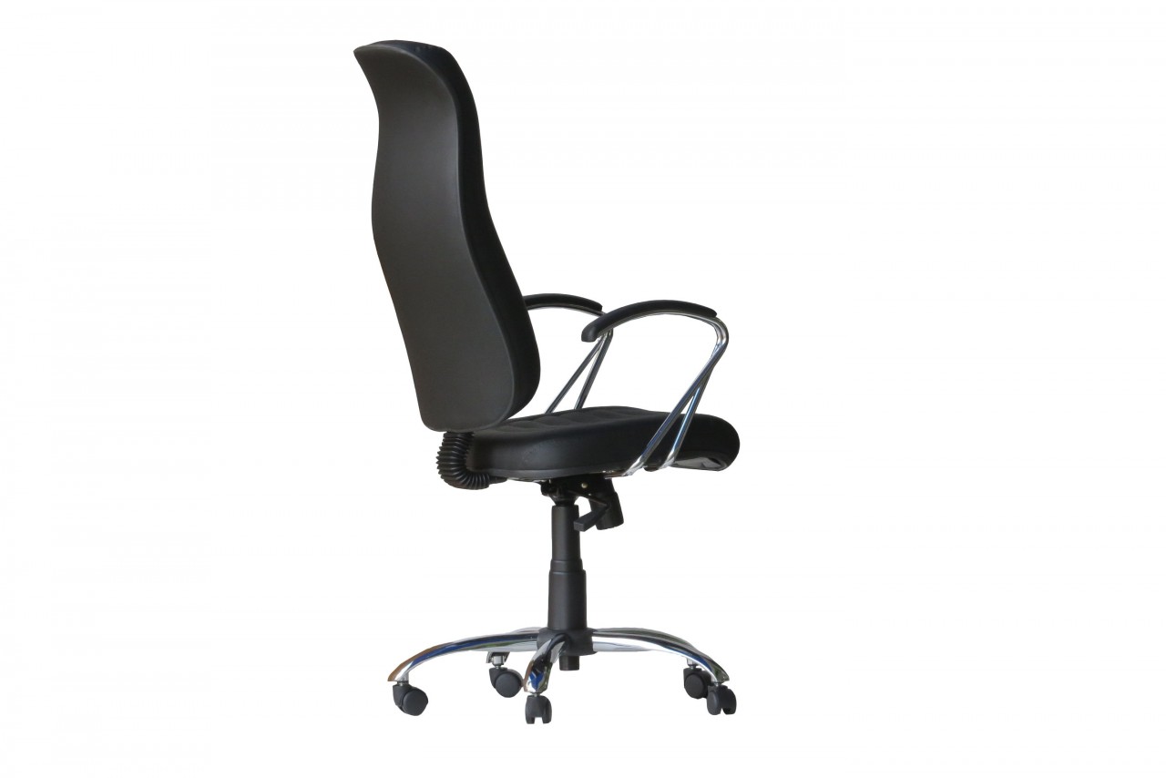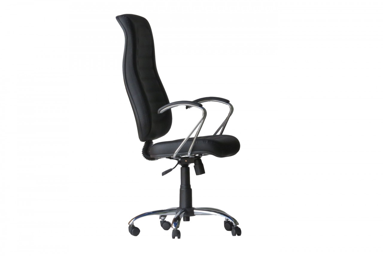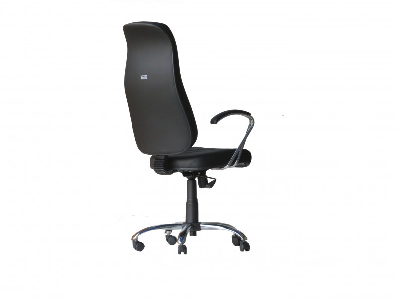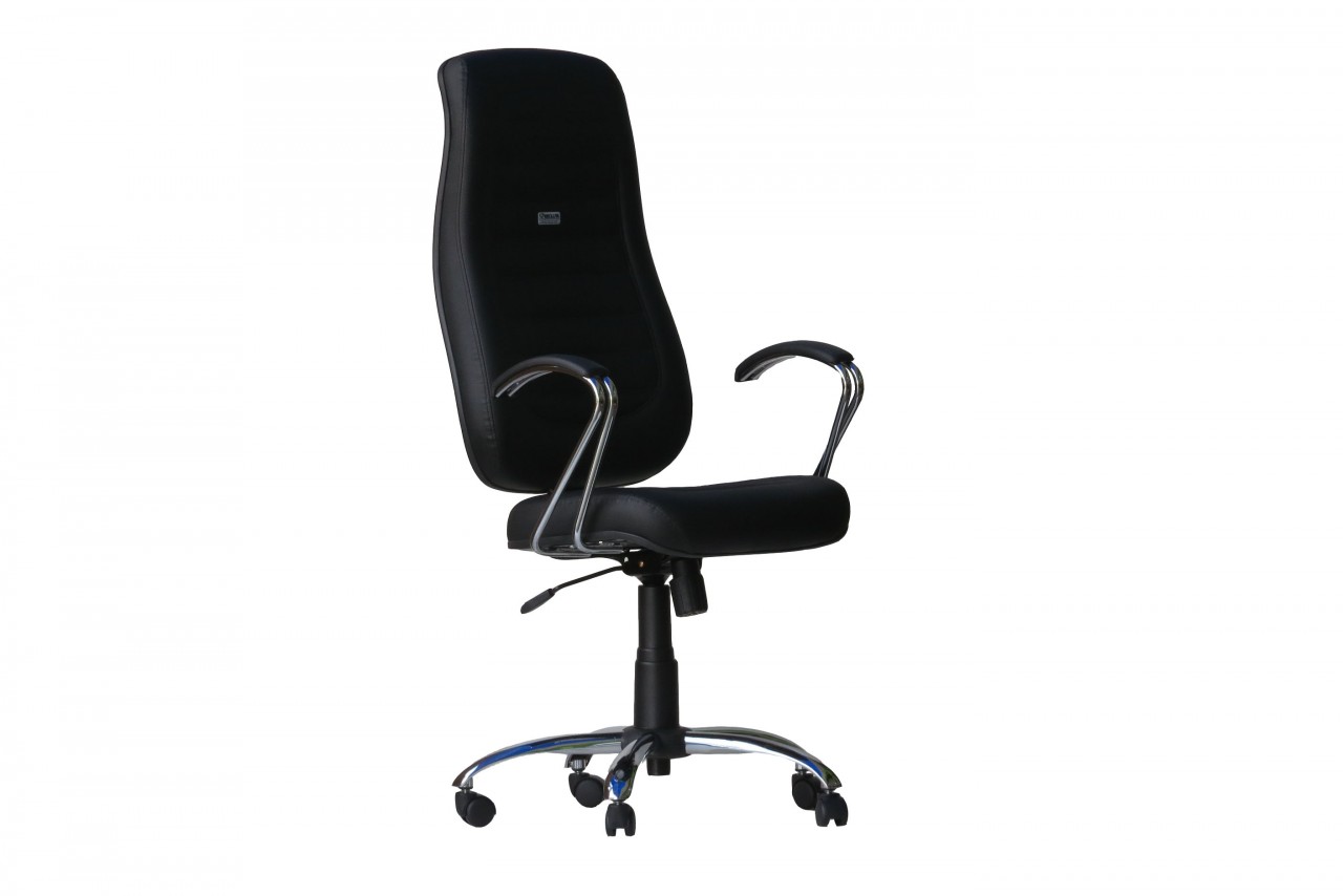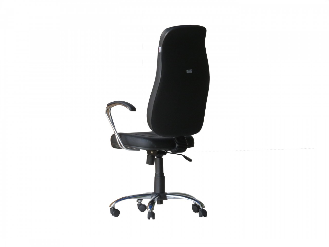 CADEIRA PRESIDENTE MASTER COM REVETIMENTO EM COURVIM PRETO COM COSTURAS DECORATIVAS, REGULAGEM DE ALTURA Á GÁS, RELAX E TRAVA DE RELAX APOIO DE BRAÇOS E BASE GIRATÓRIS CROMADOS MARCA VALENÇA ESTOFADOS / FRISOKAR CERANTOLA