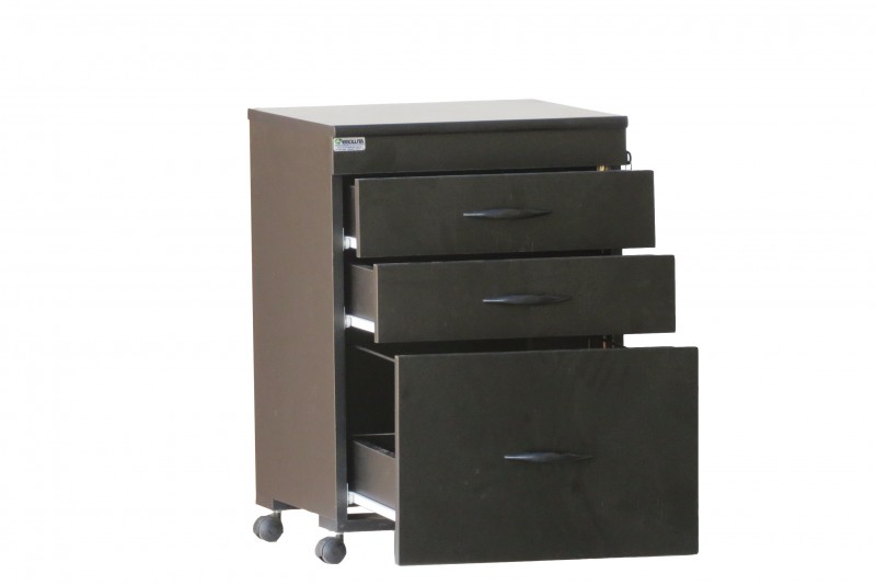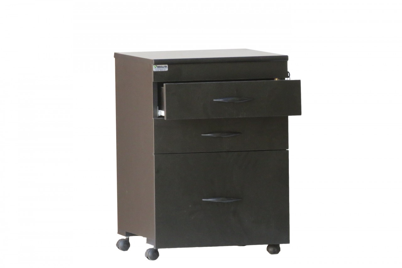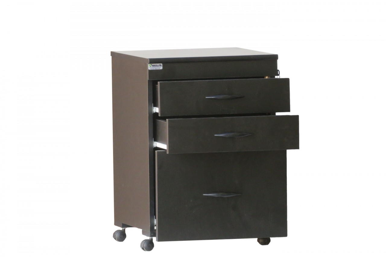 GAVETEIRO VOLANTE COM 1 GAVETÃO PARA PASTAS E 2 GAVETAS COM 4 RODÍZIOS EM BP PRETO MARCA VALENÇA MOVEIS