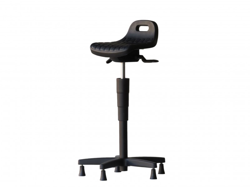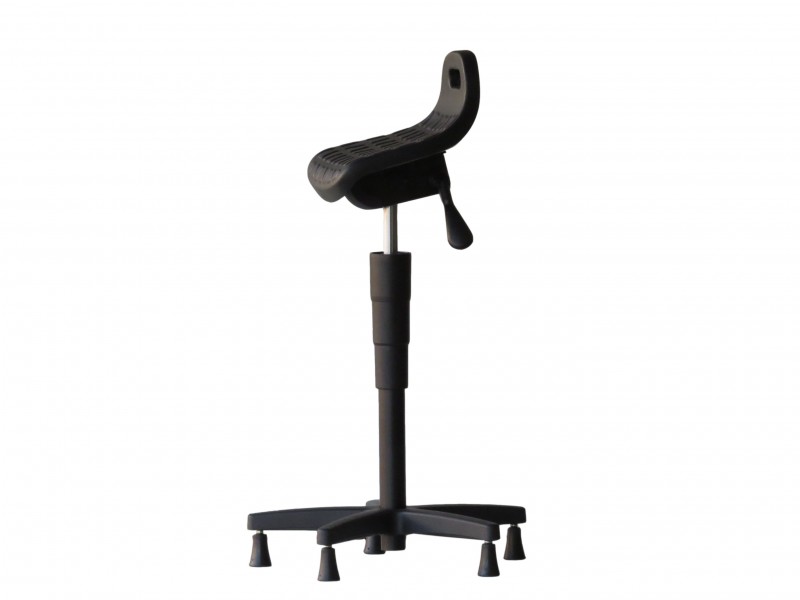 BANQUETA ERGÔNOMICA SEMI-SENTADO, COM ASSENTO EM MADEIRA COMPENSADO COM MULTILAMINADO NA ESPESSURA DE 12MM E REVESTIDO EM POLIURETANO E DESIGN ANTIDERRAPANTE, COM MECANISMO QUE PERMITE AJUSTE TANTO NA ALTURA COMO NA INCLINAÇÃO DO ASSENTO PERMITINDO UM PERFEITO ACOMODAMENTO, COLUNA A GAS COM REGULAGEM ESPECIAL DE ALTURA DE 260MM E BASE COM 5 PATAS REFORÇADA.