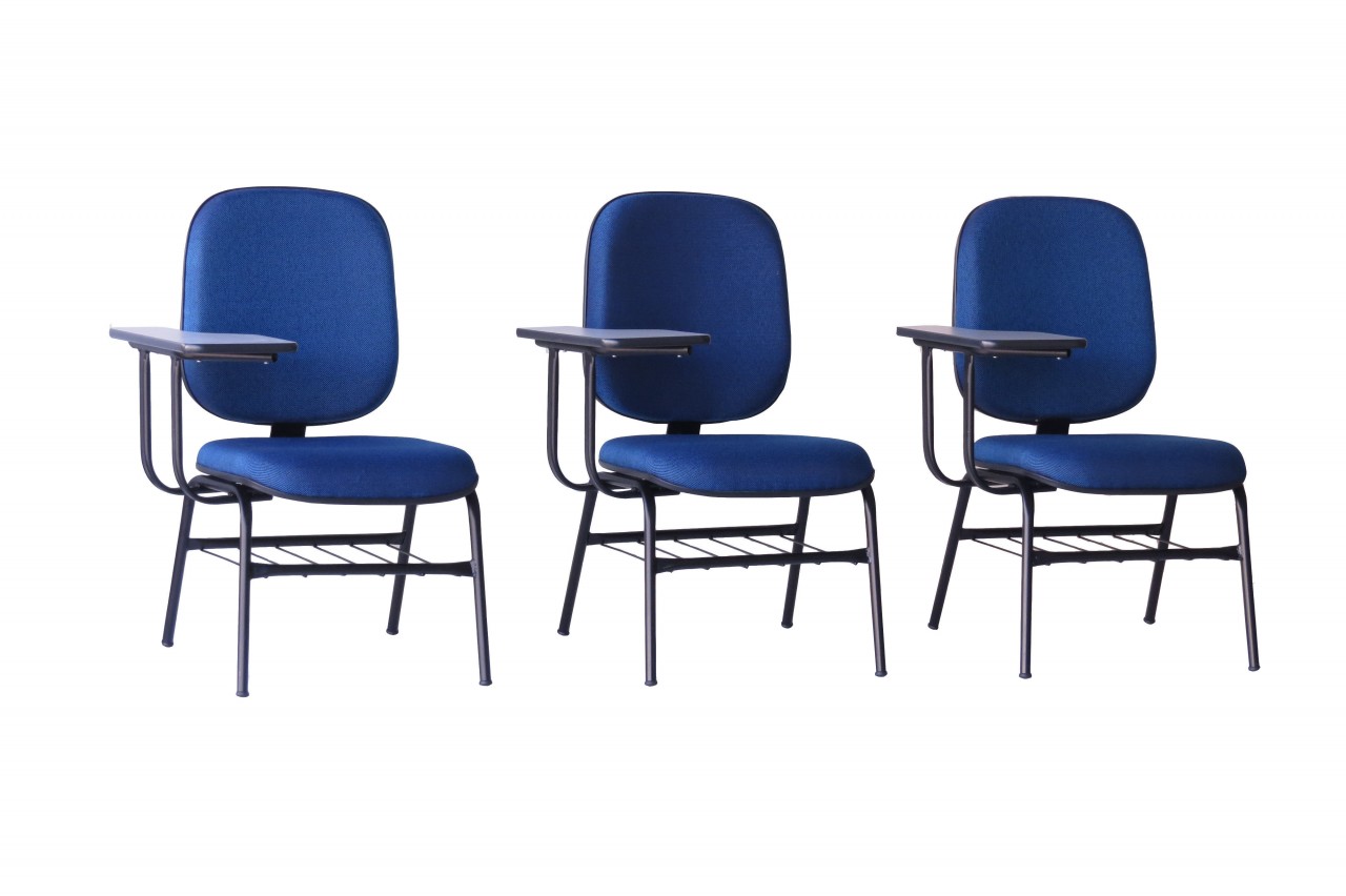 CADEIRA UNIVERSITARIA COM ESTOFAMENTO DIRETOR, PRANCHETA FIXA E GRADIL PORTA-LIVROS
