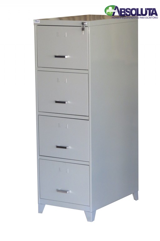 ARQUIVO DE AÇO ECONÔMICO COM 4 GAVETAS COM ROLDANAS DE AÇO E PÉS COR CINZA