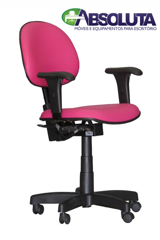 CADEIRA ERGONOMICA COM REGULAGEM DE ALTURA Á GÁS, APOIO DE BRAÇOS REGULAVEIS, AJUSTE NO ANGLO E ALTURA DO ENCOSTO, ESTOFAMENTO EXECUTIVO REVESTIDO EM COURVIN ROSA OU OUTRAS CORES.