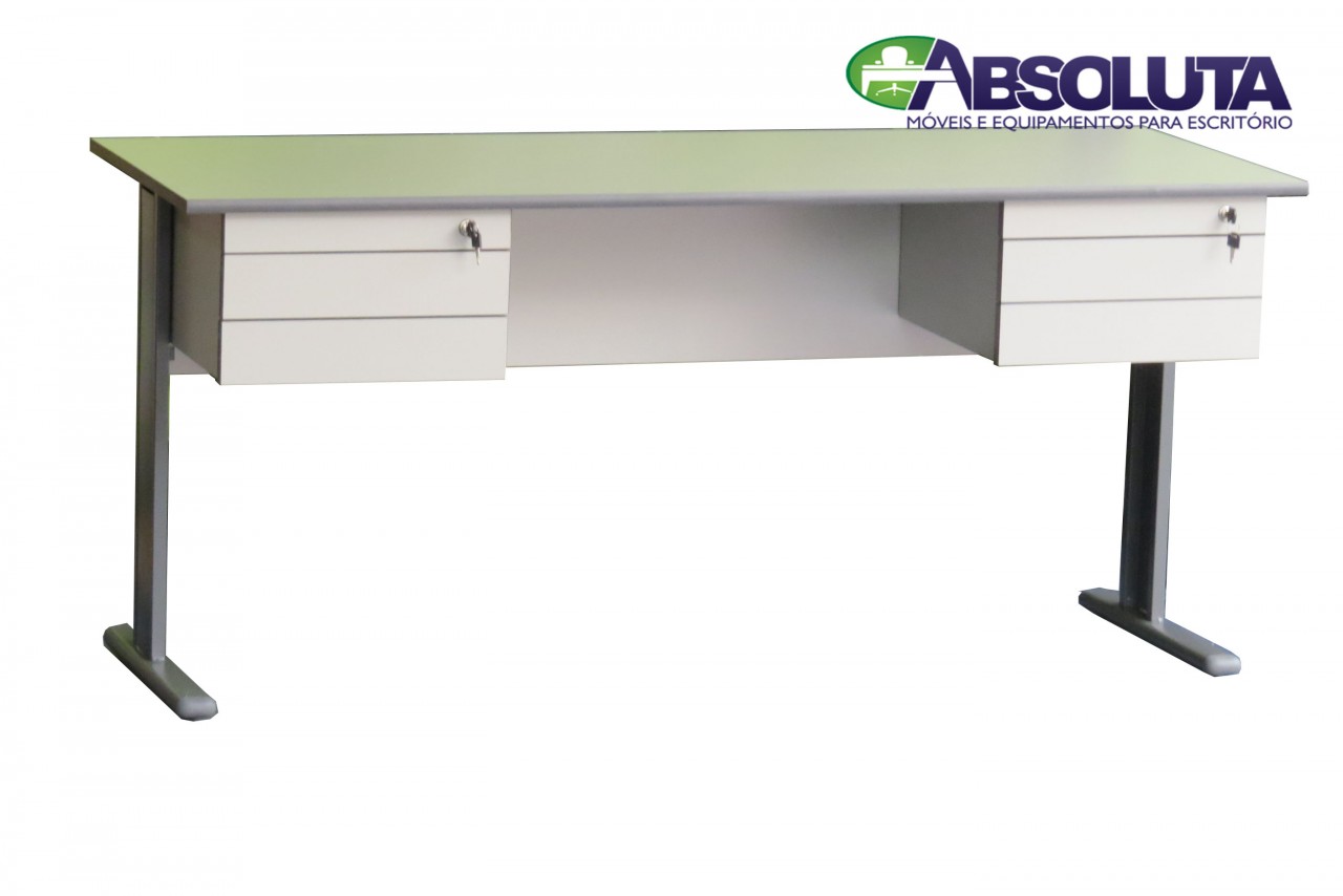 MESA DIRETOR COM 4 GAVETAS COM CHAVES MED. 1,60 X 0,60 X 0,74 CM COM TAMPO EM MELAMINICO DE 18 MM COR CINZA / GRAFITE